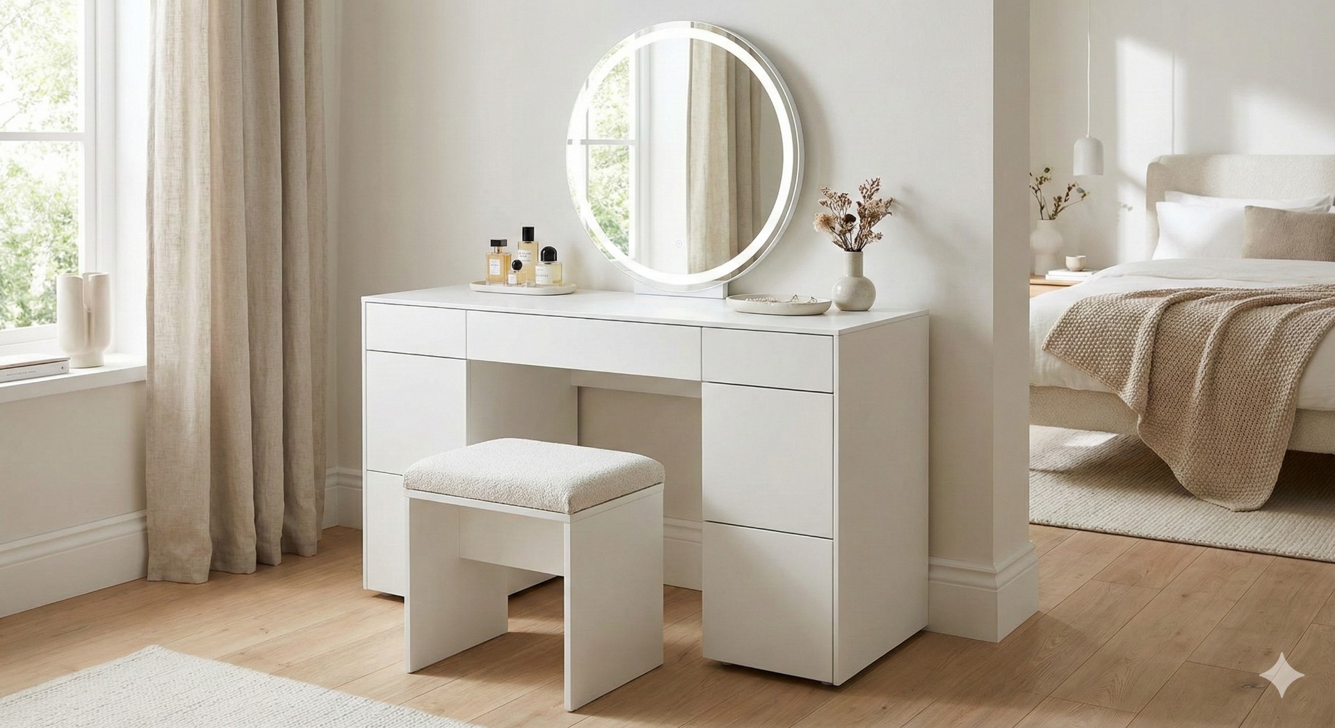 Ranní líčení v předsíni u špatně osvětleného zrcadla nebo krčení se v koupelně nad umyvadlem. Znáš to? Výsledek často vidíš až na denním světle – špatně rozetřený make-up a příliš tmavá tvářenka. Každá žena si zaslouží svůj osobní prostor, malé království, kde začíná a končí den.