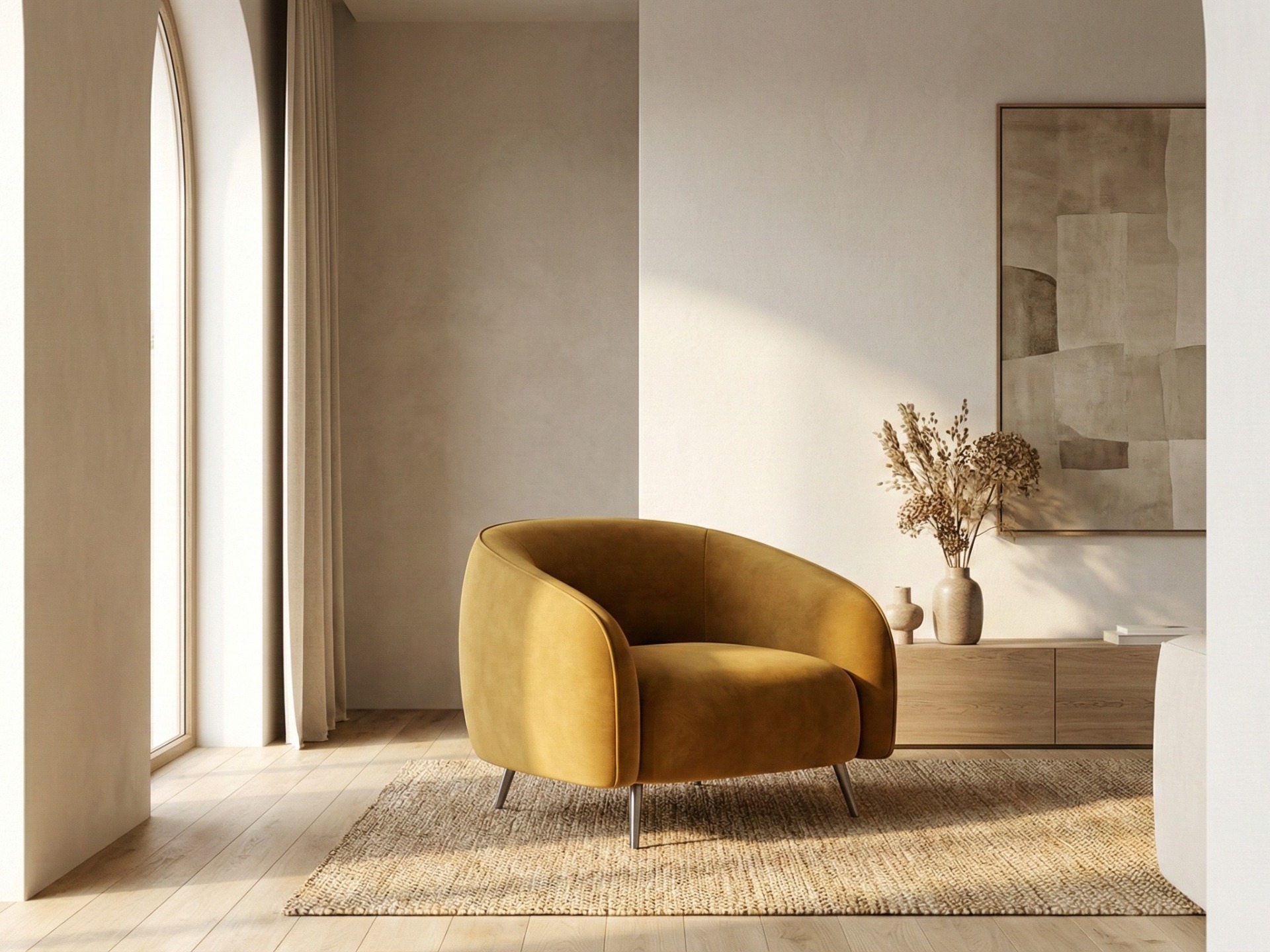 Tip designéra: Pokud zvolíte výraznou komodu, dejte na ni vázu s květinami v kontrastní barvě. Pokud zvolíte barevné křeslo, hoďte přes něj pléd v neutrálním tónu, aby se vizuálně propojilo se zbytkem místnosti.