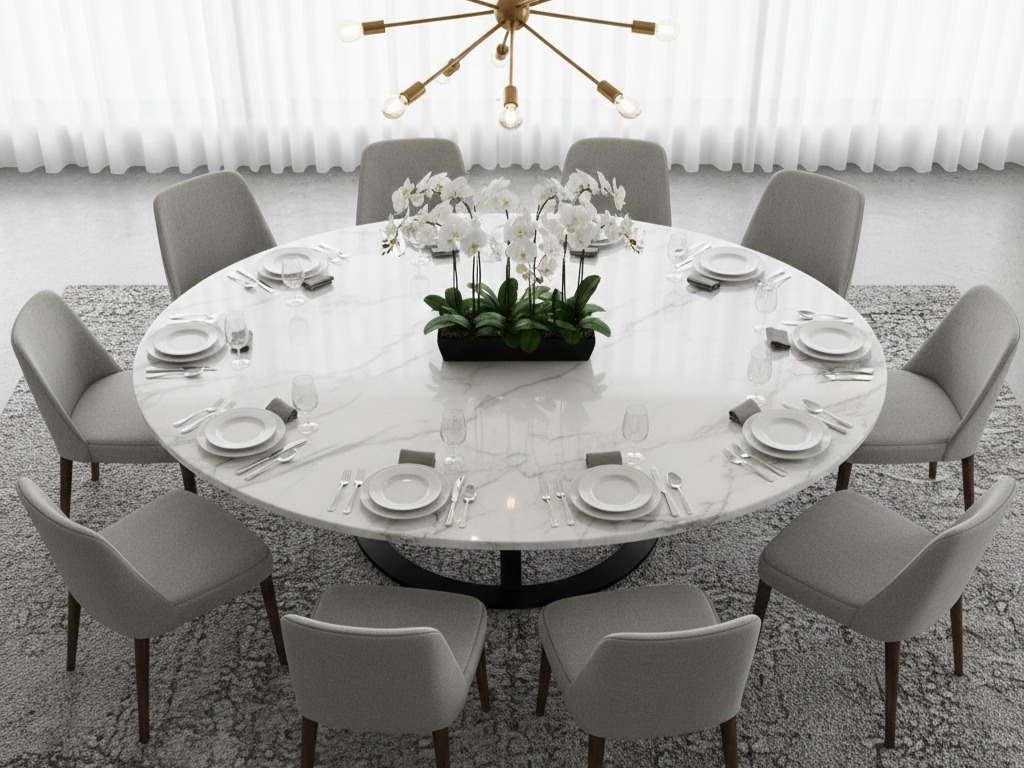 Řešení: Pro velké počty lidí je ideální stůl s centrální podnoží (jedna masivní noha uprostřed nebo tvar písmene X).